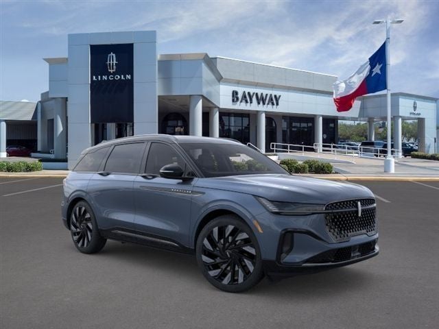 This vehicle comes equped with the following features and options : Equipment Group 202A Reserve II (110V Power Converter, Auto Air Refresh, BlueCruise Equipped (4-Years Included), Digital Scent, Hands-Free Power Liftgate, Lincoln App, Lincoln Digital Experience, Panoramic Vista Roof with Powershade, Premium Leather Trimmed Captain's Chairs, Radio: AM/FM Revel Audio System, Rear Heated Seats with Switch Control, and SiriusXM with 360L), Jet Appearance Package (Black Exterior Elements, Body-Color Exterior Elements, and Wheels: : 22 Satin Dark Luster Aluminum), Lincoln Connectivity Package, 10 Speakers Satellite Radio Ready, 4-Wheel Disc Brakes, ABS brakes, Adaptive suspension, Air Conditioning, Alloy wheels, AM/FM radio: SiriusXM with 360L, Apple CarPlay/Android Auto, Auto High-beam Headlights, Auto tilt-away steering wheel, Auto-dimming Rear-View mirror, Automatic temperature control, Brake assist with Blind Spot Monitor and Lane Assist, Bumpers: body-color, Compass, Delay-off headlights with Perimeter Approach Lights, Driver door bin, Driver vanity mirror, Dual front impact airbags, Dual front side impact airbags, Electronic Stability Control, Emergency Communication system: 911 Assist, Exterior Parking Rearview Camera, Four wheel independent suspension, Front anti-roll bar Forward Collision Warning, Front Bucket Seats, Front Center Armrest w/Storage, Front dual zone A/C, Front reading lights, Fully automatic headlights, Garage door transmitter, Heated door mirrors, Heated Seats, Heated steering wheel, Illuminated entry, Knee airbag, Leather steering wheel, Low tire pressure warning, Memory seat, Navigation System, Occupant sensing airbag, Outside temperature display, Overhead airbag, Overhead console, Panic alarm, Passenger door bin, Passenger vanity mirror, Power door mirrors, Power driver seat, Power Hands Free Liftgate, Power passenger seat, Power steering, Power windows, Radio data system Apple Car Play and Android Auto, Rain sensing wipers, Rear anti-roll bar, Rear reading lights, Rear seat center armrest, Rear window defroster, Rear window wiper, Remote keyless entry with Push Button Starting, Security system, Speed control, Speed-sensing steering, Speed-Sensitive Wipers, Split folding rear seat, Spoiler, Steering wheel memory with Steering Wheel Controls, Steering wheel mounted audio controls, Tachometer, Telescoping steering wheel, Tilt steering wheel, Traction control, Trip computer, Turn signal indicator mirrors, Variably intermittent wipers, and Ventilated front seats.